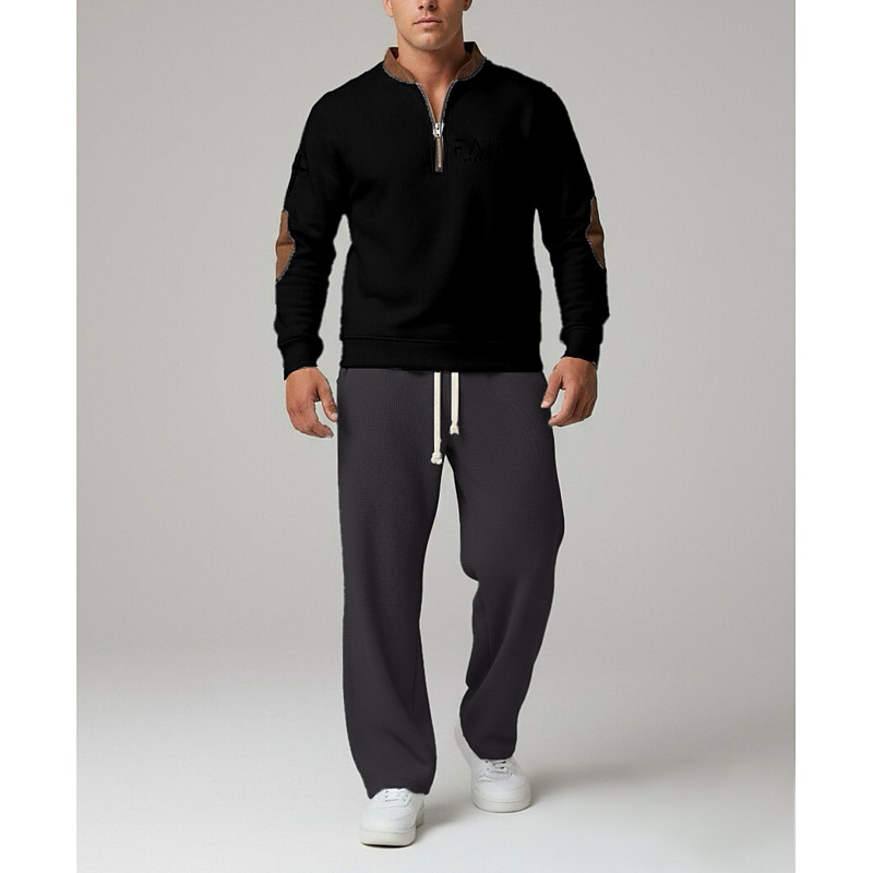 Men's Tracksuit Sweatsuit Quarter Zip Sweatshirt Apricot Black White Red Light Grey Standing Collar Plain 2 Piece Sports Outdoor Daily Holiday Streetwear Basic Casual Fall Winter Clothing Apparel
