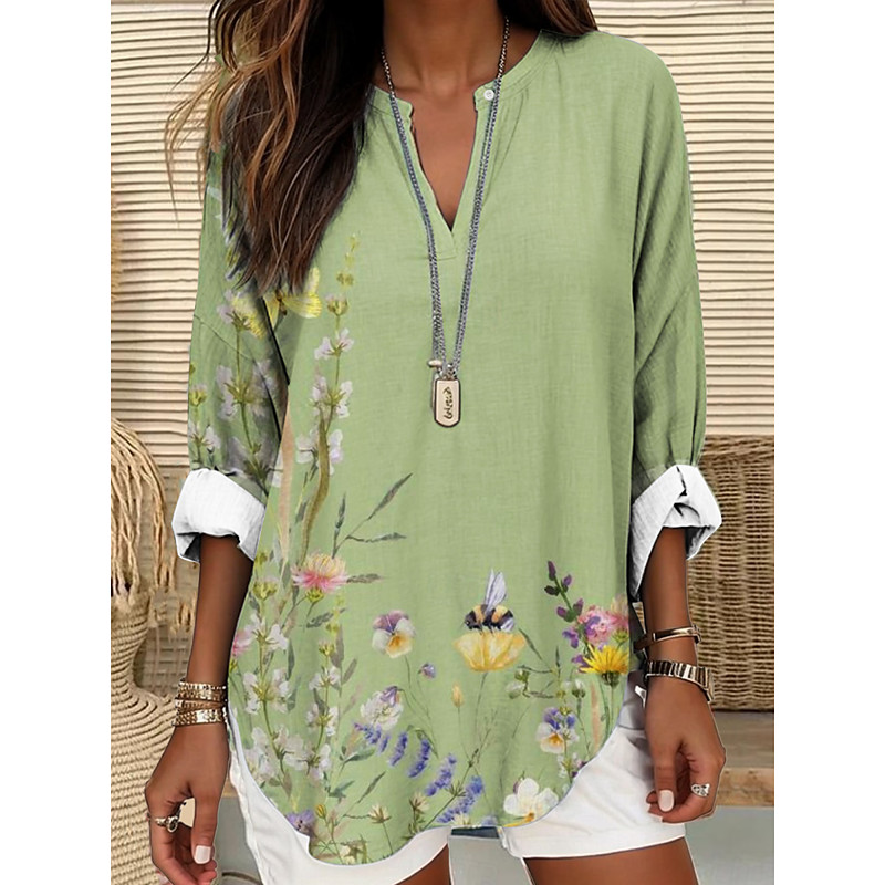 Women's Blouse Tunic V Neck Long Sleeve Boho Casual Tops 3D Print Graphic Basic Regular Tops Daily Buttons Print Pink Light Blue