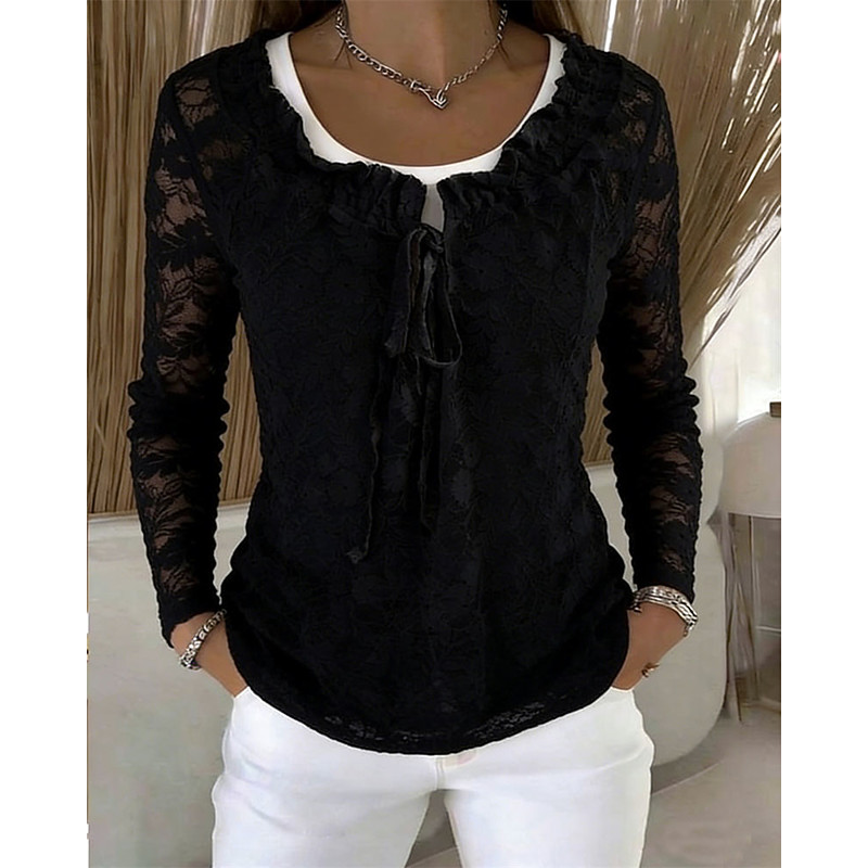 Women's Lace Shirt Summer Tops Blouse Dressy Tops Solid Color Elegant Ladies Stylish Long Sleeve Shirt Collar Regular Tops Daily Work Going out Ruched Lace Patchwork Blue Black White Yellow Pink