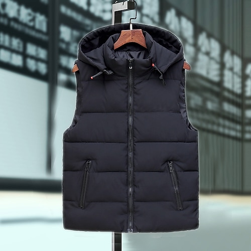 Per uomo Gilet imbottito Gilet Vacanza Quotidiano Data Moda Casual Autunno Inverno Tasca Poliestere Caldo Confortevole Tinta unica Cerniera Con Cappuccio Vestibilità regolare Nero Grigio Gilet