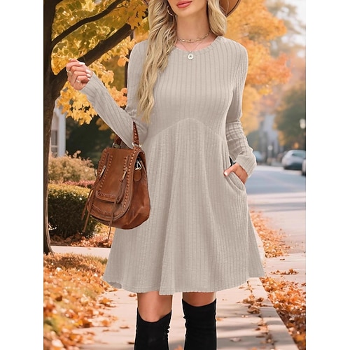 Per donna Abito maglione Elegante Vintage Moda Tinta unica A Coste Girocollo Patchwork Manica Lunga Top lunghi Maglia Scuola All'aperto Casa Nero Rosso Primavera Autunno