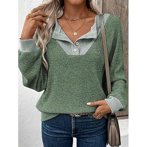 Per donna Blusa Tinta unica Elegante Essenziale Casual Manica 3/4 Girocollo Top Regolari Quotidiano Patchwork Verde salvia Nero Rosso Blu marino Blu Primavera Autunno