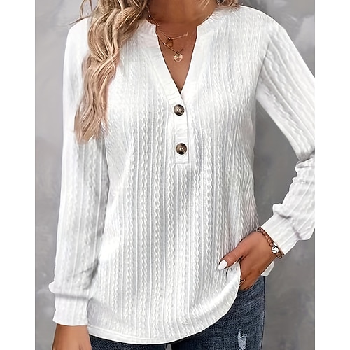 Per donna Maglietta Tinta unica Elegante Moda Manica Lunga Scollo a V Top Regolari Quotidiano Weekend Bottoni Blu Nero Bianco Giallo Rosa Primavera Autunno