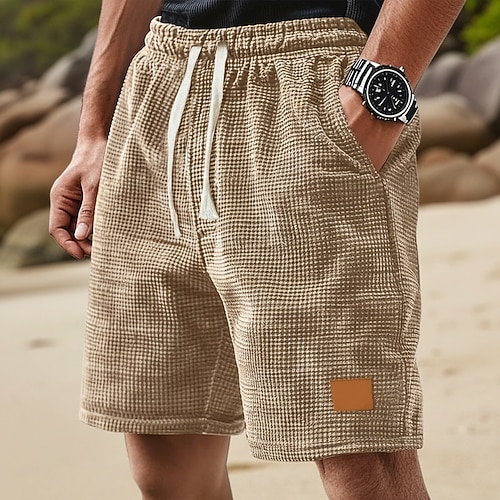 Per uomo Pantaloncini Waffle Pantaloncini Estivi Shorts da Spiaggia Pantaloncini casual Pantaloncini strutturati Coulisse Elastico in vita Tinta unica Comodità Lunghezza al ginocchio Quotidiano