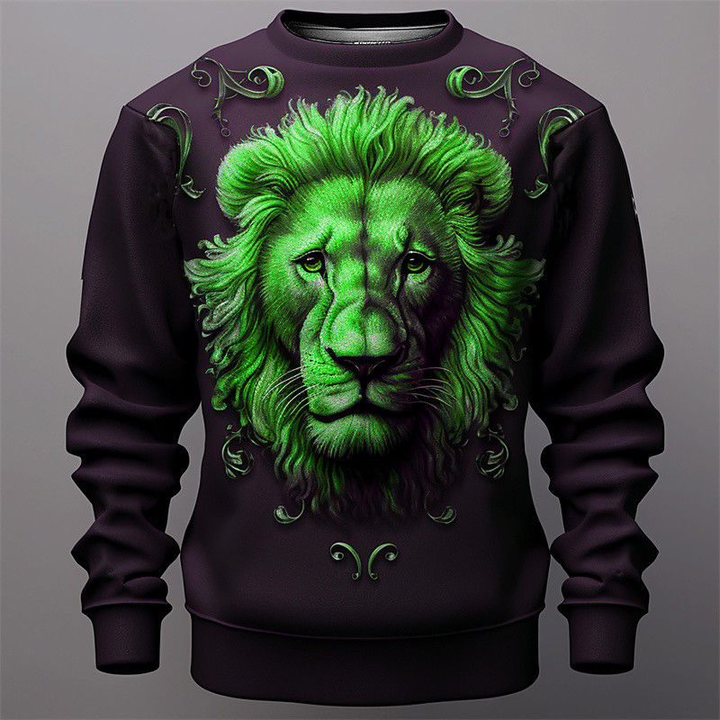 Men's Graphic Lion Sweatshirts Golf Pullover Sweatshirt Long Sleeve Sweatshirt Crew Neck Fashion Daily Casual 3D Print Vacation Holiday Going out Print Spring Fall