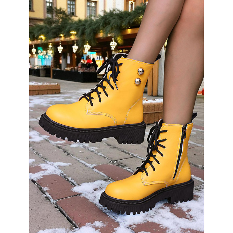Women's Green Crocodile Print Combat Boots – Trendy Lace-Up Ankle Boots for Street Style, Outdoor and Fall Fashion