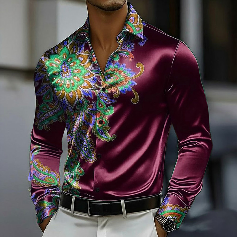 Men's Paisley Floral Print Flowers Shirt Satin Shirt Dress Shirt Long Sleeve Vintage Retro Vacation Dailywear Summer Spring Fall Turndown 3D Print Button Up Shirts Blue Burgundy Purple Green