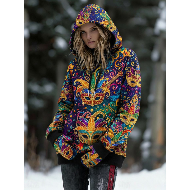Carnival Women's Pullover Hoodies Graphic Fashion Casual Long Sleeve Hooded Regular Tops Casual Dailywear Drawstring Print Purple Spring Fall