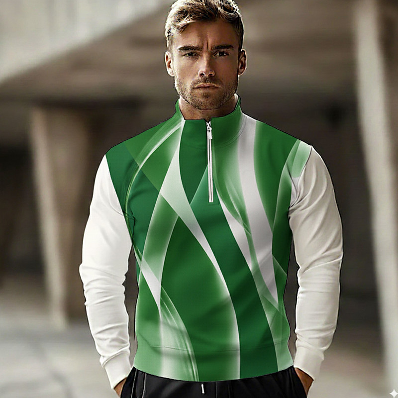 Men's Abstract Geometic Line Polo Long Sleeve Standing Collar Casual Athleisure Vacation Athleisure Casual Daily 3D Print Spring Fall Winter Black Green Blue