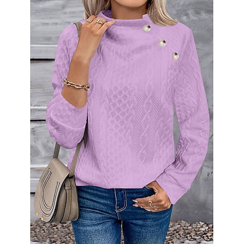 Per donna Blusa Floreale Elegante Casual Manica Lunga Collo Alto Top Regolari Quotidiano Bottoni Nero Bianco Rosa Viola Primavera Autunno Inverno