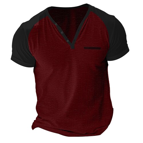 Per uomo Maglietta Manica Corta Maniche Corte Henley Estate Colore Solido / Tinta Unita Casual Casual / Sportivo Blocco di colore Bottoni Manica corta Sport Outdoor Casuale Sportivo Vinaccia Giallo