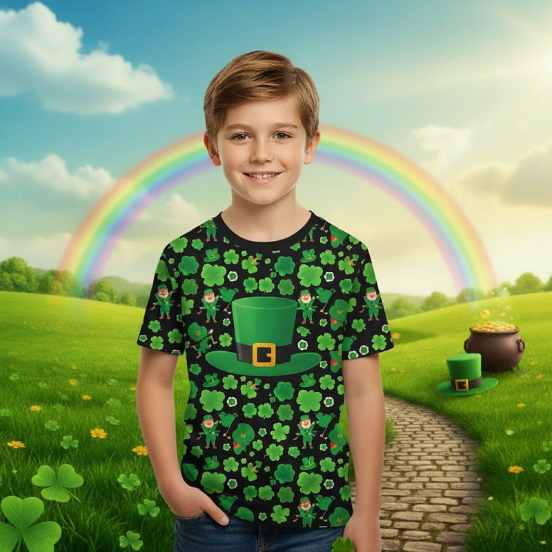 St. Patrick Boys 3D Dog Four Leaf Clover Tee Shirt Short Sleeve 3D Print Summer Active Sports Fashion Polyester Kids 3-12 Years Crew Neck Outdoor Casual Daily Regular Fit
