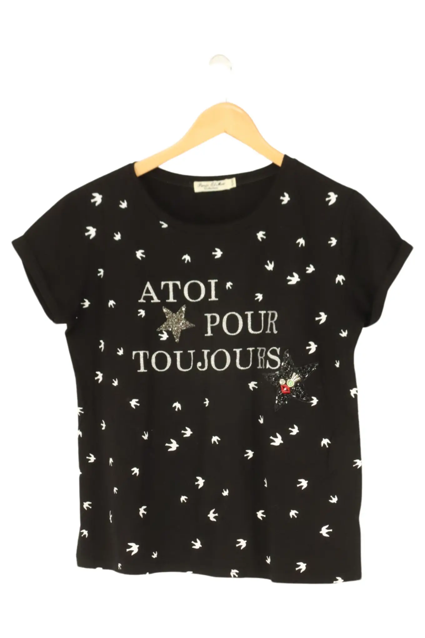 PARIS ET MOI T-Shirt Schwarz Glitzer Schriftzug Gr. S Damen
