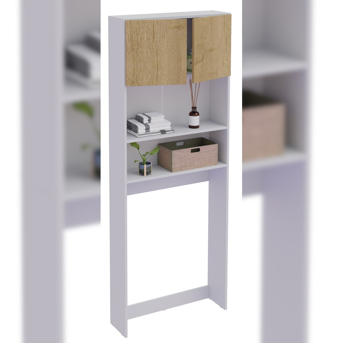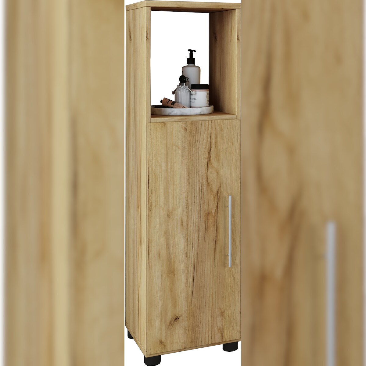 VCM Badmöbel Midischrank Flandu Honig-Eiche H. 93 x B. 31 x T. 30 cm