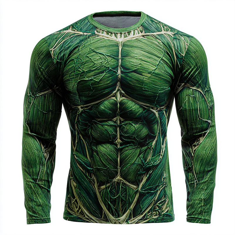 Men's Muscle 3D T Shirt Long Sleeve T shirt 3D Print Crew Neck Shirt Fashion Exaggerated Daily Street Green 1# Green 2# Green 3# Summer Spring Fall Clothing Apparel S M L XL XXL XXXL