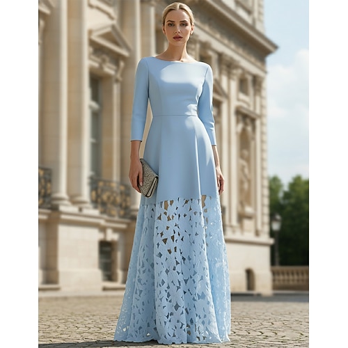 Linea ad A Lunghezza al pavimento Abito da Sera Elegante Madre della sposa Matrimonio informale / diurno Manica 3/4 Scollo a Barca Matrimonio Formale Crepe Elasticizzato con Applicazioni