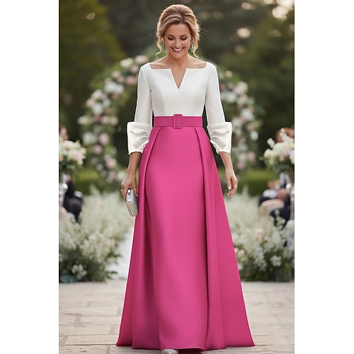 Linea ad A Tubino Colonna Lunghezza al pavimento Abito da invitata a nozze Abito Formale Abito da sera Abito da cerimonia per signora Manica 3/4 Scollo a V Elegante Formale Ospite di nozze