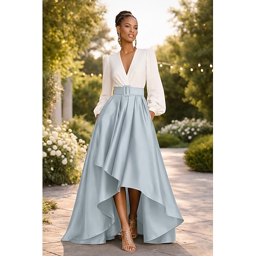 Linea ad A Asimmetrico Abiti da Cocktail Abito da Sera Da principessa Abito formale Elegante Monocolore Alto Basso Manica 3/4 Scollo a V Formale Ospite di nozze Raso con Arricciato