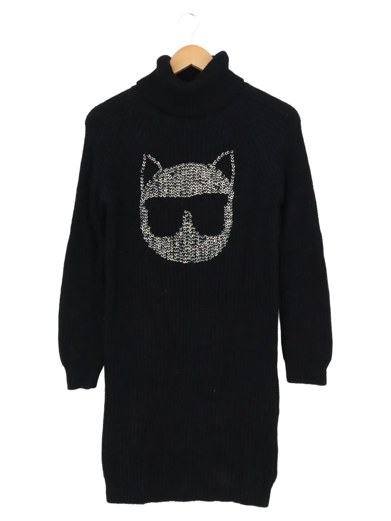 KARL LAGERFELD Kids Strickkleid Schwarz Glitzer-Logo Gr.150
