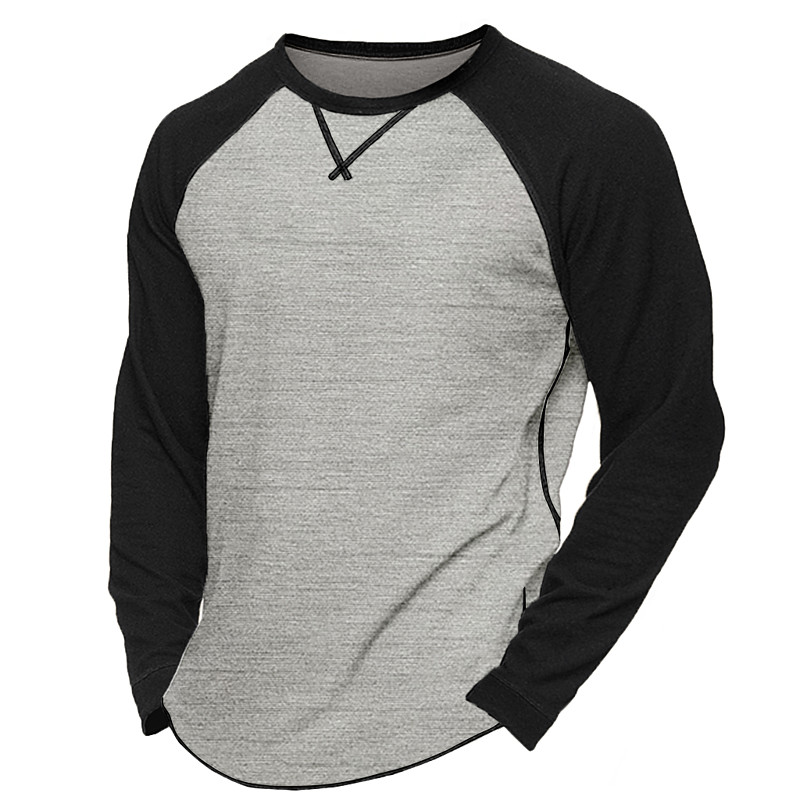 Men's 60% Cotton Raglan Sleeve Sweatshirt Tee Top Long Sleeve Shirt Solid Color Crew Neck Outdoor Street Long Sleeve Color Block Clothing Apparel Daily Casual Street Style