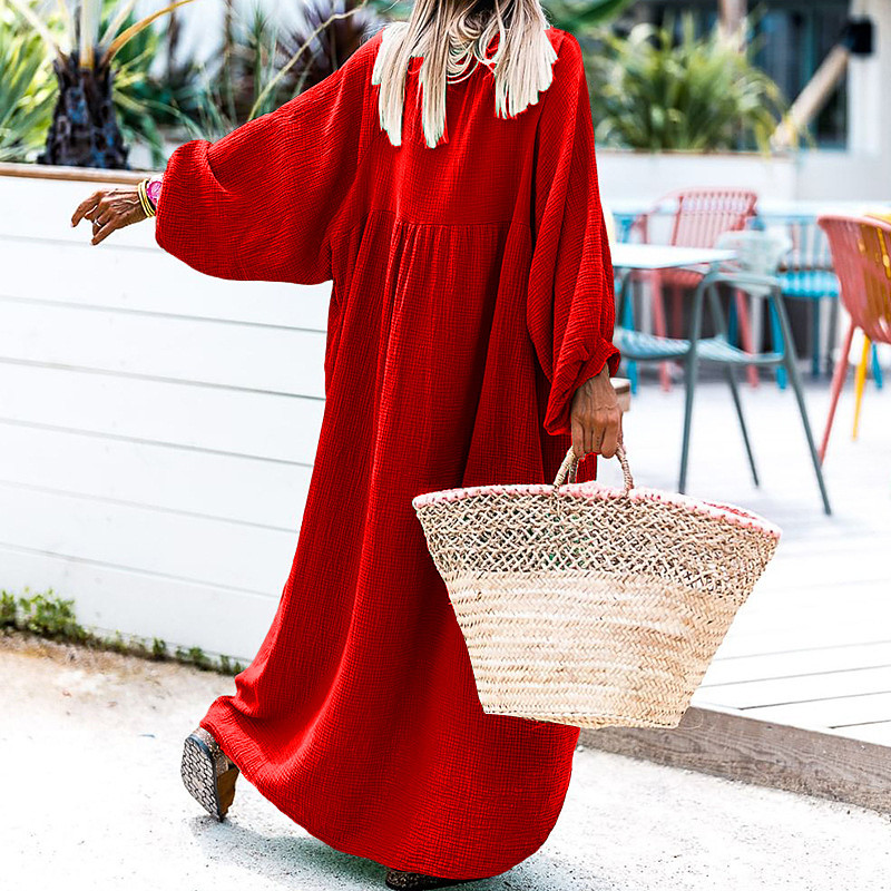 Women's Long Dress Maxi Dress Casual Dress Stylish Casual Lantern Sleeve Daily Vacation Date Regular Fit Plain Long Sleeve Stand Collar Black Red Brown Spring Fall