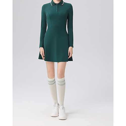 Per donna Tinta unita Abito da tennis con pantaloncini Abito sportivo Manica Lunga Tasca Elastico Traspirante Tennis Corsa Fitness Colletto Polo Vestito Nero Bianco Vino Abbigliamento da tennis