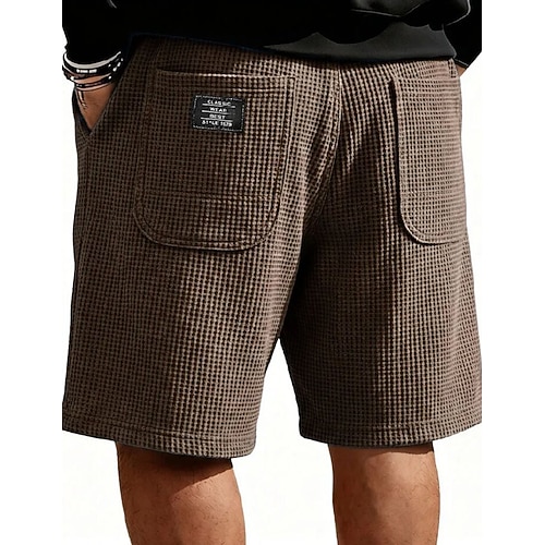Per uomo Pantaloncini Waffle Shorts Pantaloncini casual Tasca Elastico in vita Semplice A quadri Comodità Traspirante Lunghezza al ginocchio Casuale All'aperto Vacanza Vacanza Moda Nero Bianco