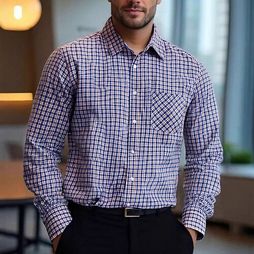 Per uomo Camicia Camicia elegante Camicia con Bottoni Plaid Matrimonio Quotidiano Blu Blu scuro Grigio Manica Lunga Collo ripiegato Primavera Autunno Abbigliamento Tasca Frontale