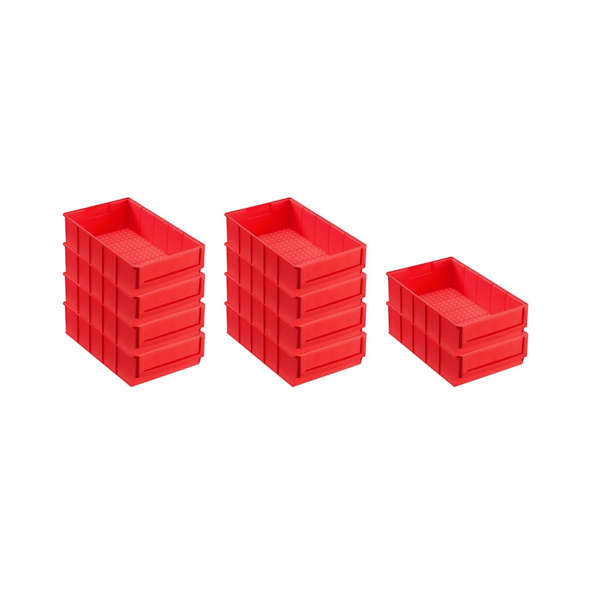 PROREGAL 10x Rote Industriebox 300 B | HxBxT 8,1x18,3x30cm | 3,4 Liter | Sichtlagerkasten, Sortimentskasten, Sortimentsbox, Kleinteilebox