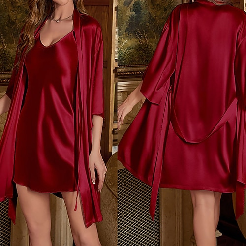 Per donna Abbigliamento da Casa Accappatoio Moda Casual Morbido Colore Puro Pizzo Patchwork Vestiti Casa Vacanza Mezza Manica Scollo a V Nero Bianco Rosa Vino Azzurro Estate Primavera Autunno