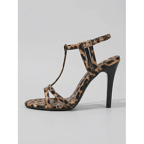 Sandali da donna con tacco a spillo e stampa leopardata, con cinturino a T, scarpe da festa sexy con tacco alto per la vita notturna, scarpe con tacco a punta aperta per club e cocktail eventi serali