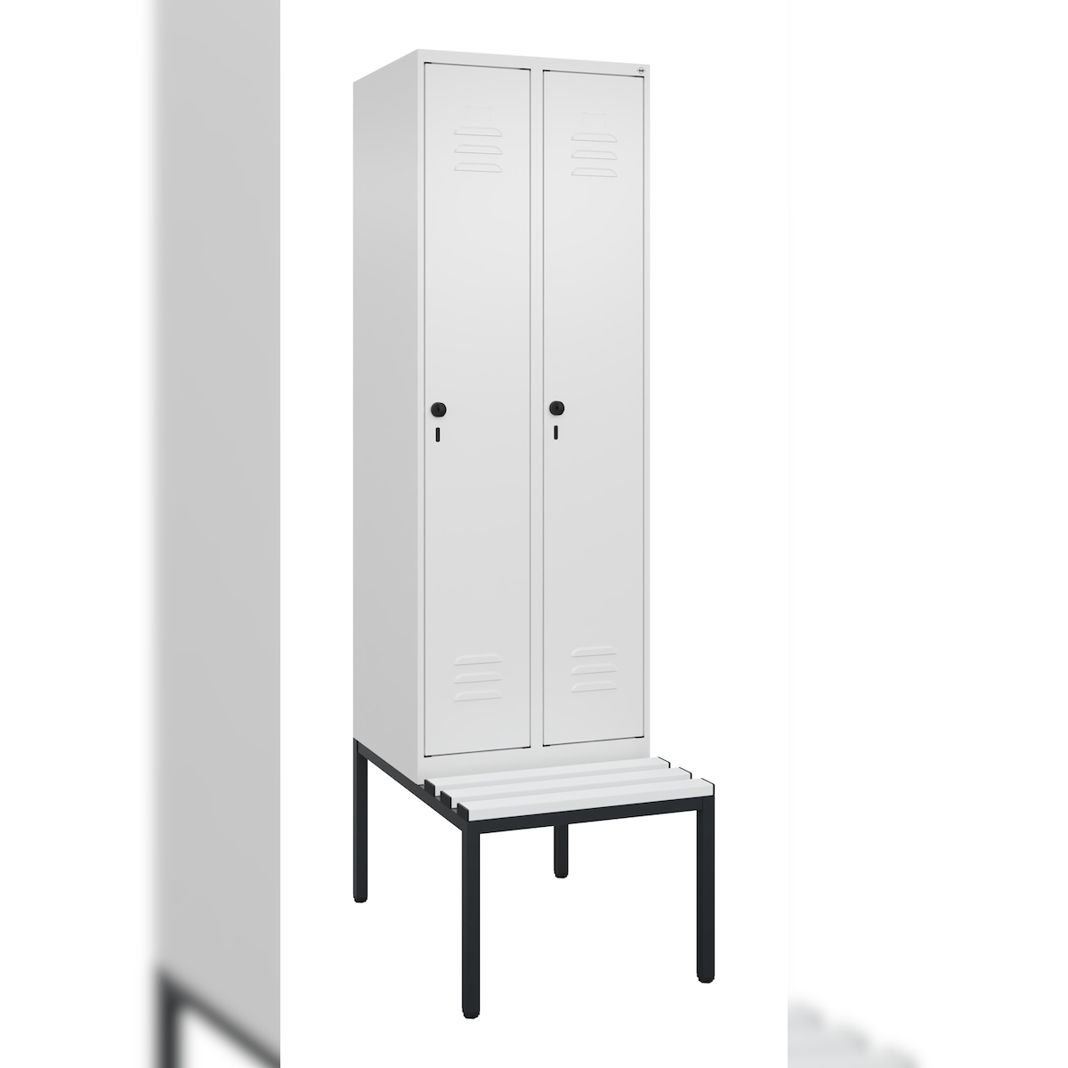 C+P Spind Classic PLUS, Kunststoff untergebaute Sitzbank, 2 Abteile, HxBxT 212x60x82cm, Sicherheitsdrehriegel, Verkehrsweiß von PROREGAL