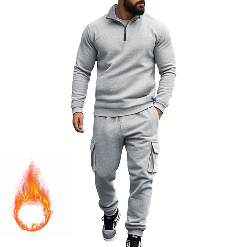 Men's Tracksuit Sweatsuit Quarter Zip Sweatshirt Apricot Black White Wine Red Half Zip Plain 2 Piece Sports Outdoor Daily Holiday Polyester Streetwear Basic Casual Fall Winter Clothing Apparel