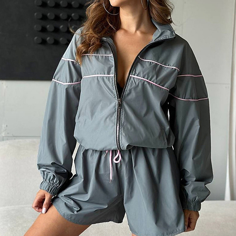 Women's Tracksuit Track Shorts Short Sweatpant Drawstring Pocket Solid Colored Clothing Suit Summer White Green Gym Training Running High Waist Windproof Lightweight Moisture Wicking Long Sleeve Sport