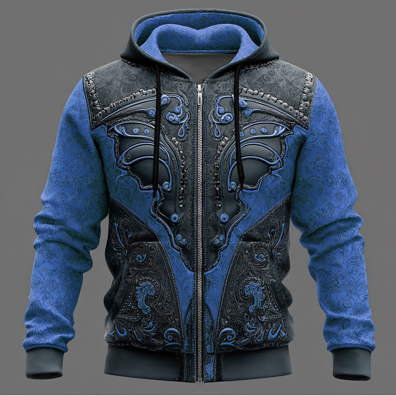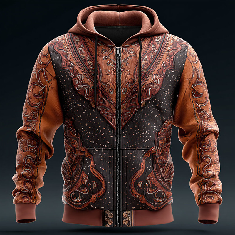 Men's Cowboy Costume Hoodie Jacket Sweatshirt Western Cowboy All Over Print Long Sleeve Zip Vacation Streetwear Brown Green Khaki Gray Zipper Fall Winter Designer S M L XL XXL XXXL