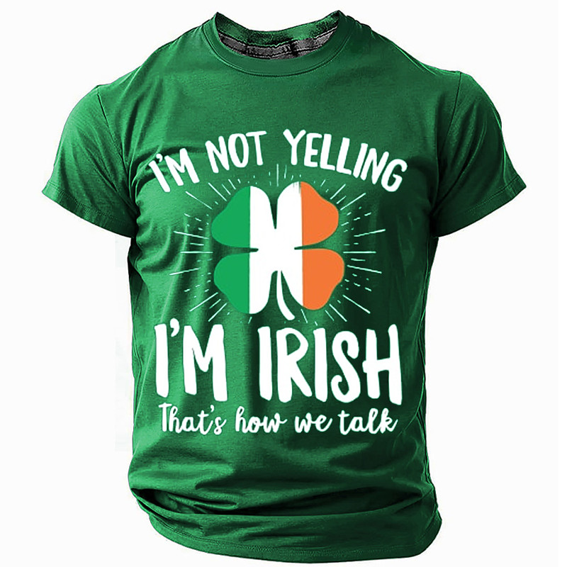 St. Patrick Men's Shamrock Lucky Irish T Shirt Short Sleeve T shirt 3D Print Crew Neck Shirt Designer Casual Party Holiday Club Black Green Summer Spring Clothing Apparel S M L XL XXL XXXL