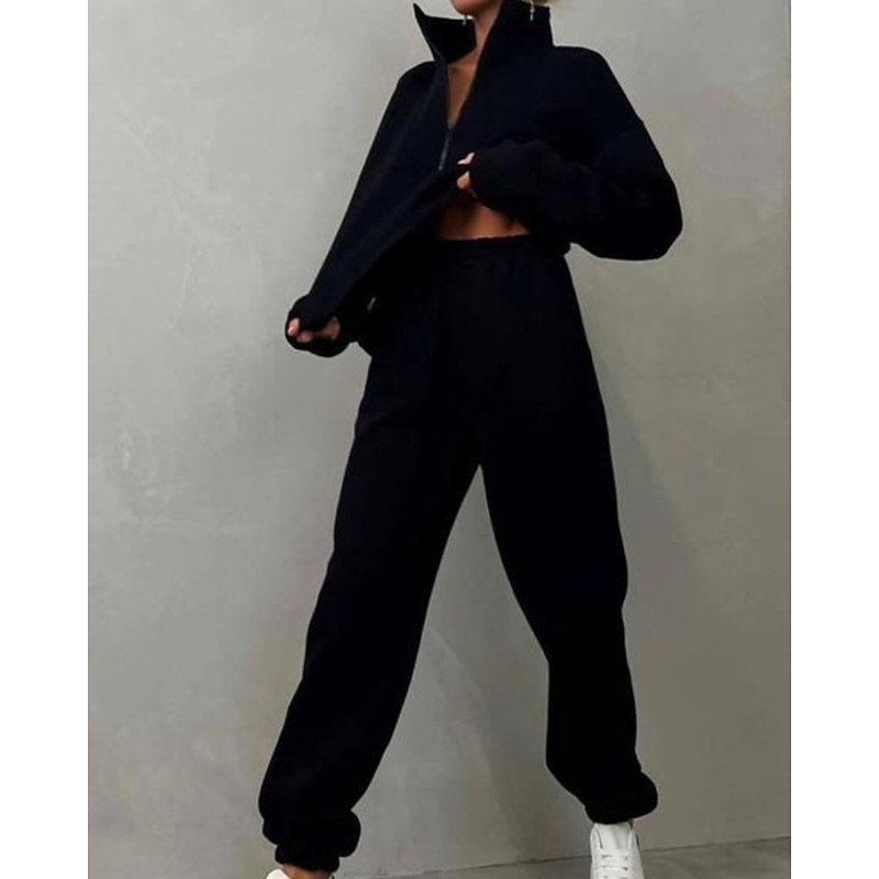 Women's Tracksuit Sweatpants Pullover Sweatshirt Zipper Pocket Solid Colored Clothing Suit Fall Black Pink Gym Workout Sports Windproof Long Sleeve Sport Activewear Micro-elastic Regular Fit