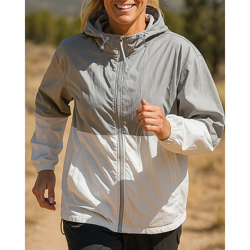 Women's Running Jacket Outdoor Jacket Hooded Jacket Drawstring Zipper Pocket Long Sleeve Top Athleisure Patchwork Windproof UPF 50 Breathable Fishing Hiking Running Sportswear Activewear White Pink