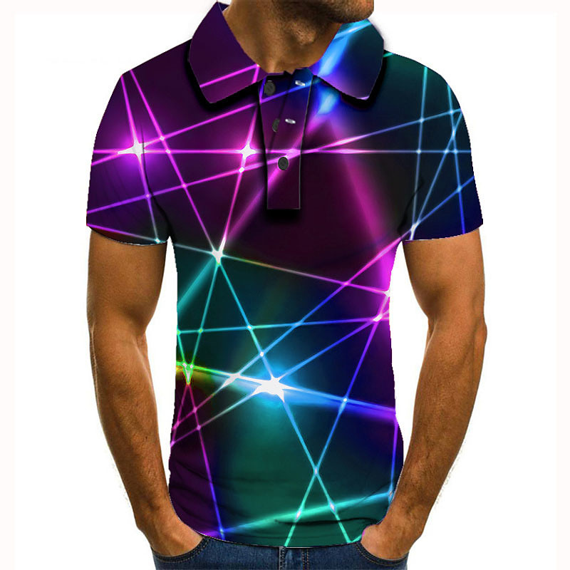Men's Graphic Neon Polo Shirts Golf Shirt Short Sleeve Polo Shirts Collared Shirts Casual Vacation Wear Rave Wear Party Outfits Buttons 3D Print White Pink Green