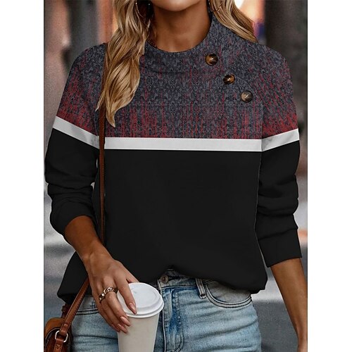Per donna Blusa Tinta unica Elegante Casual Manica Lunga Collo Alto Top Regolari Quotidiano Ferie Bottoni Nero Bianco Giallo Rosso Blu Estate Autunno