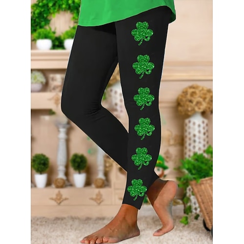 Per donna Leggings Attivo Vacanza Moda Lunghezza intera Vita AltaPantsGiorno di San Patrizio Floreale Grafico Trifoglio Stampato Taglio alto Comodità All'aperto Confortevole Elasticizzato Vacanza