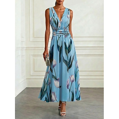 Per donna Abito maxi Abito da Ballo Vestito da Festa Abito da Cocktail Vestito a ruota Elegante Moda Festa serale Feste Occasione speciale Vestibilità regolare Floreale Senza Maniche Scollo a V