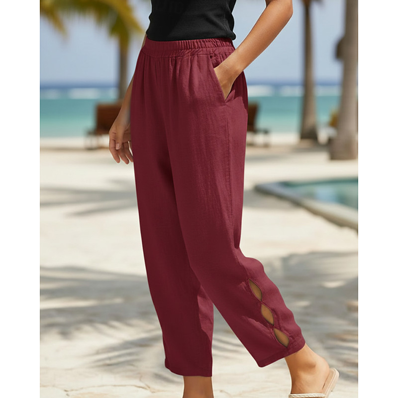 Women's Cotton Linen Pants Chinos Vacation Streetwear Casual Full Length Medium Waist Plain Pocket Elastic Waistband Comfortable Breathable Inelastic Daily Outdoor Street Grey White Dark Red Dark Navy