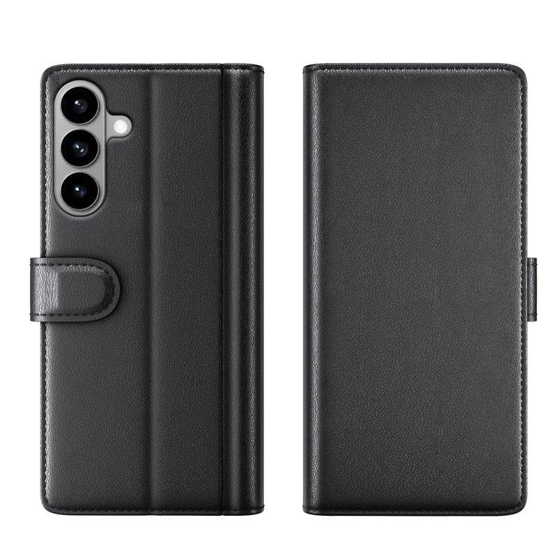Samsung Galaxy S26 Plånboksfodral Äkta Läder Ställ - Svart