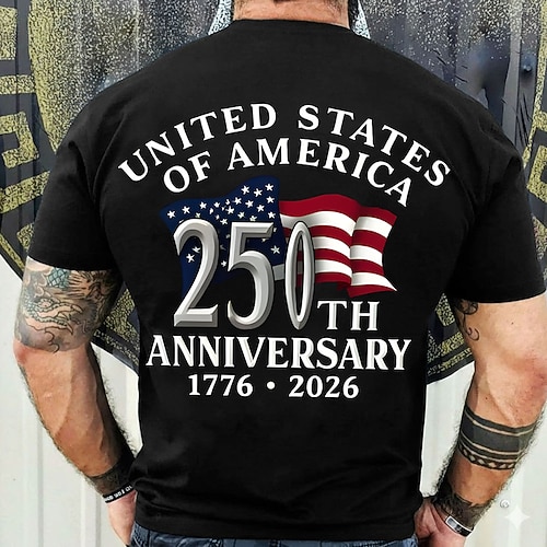 4 luglio 2026 250° Giorno della Memoria Maglietta a Manica Corta con Stampa 3D Bandiera Statunitense da Uomo Casual per Strada
