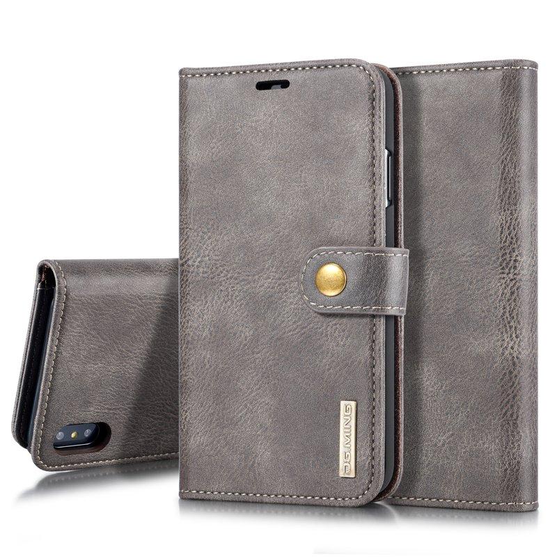 DG.MING iPhone XS Max Plånboksfodral 2-i-1 Äkta läder Grå