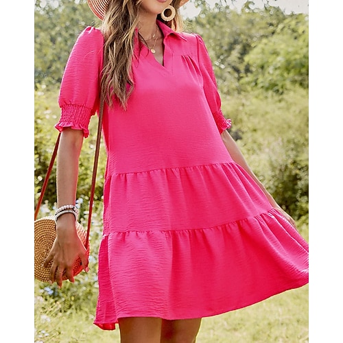Per donna Mini abito Abito casual Abito linea A Moda Essenziale Informale Da mare Giornaliero Standard Liscio Manica corta A V Nero Rosa Verde Estate Primavera