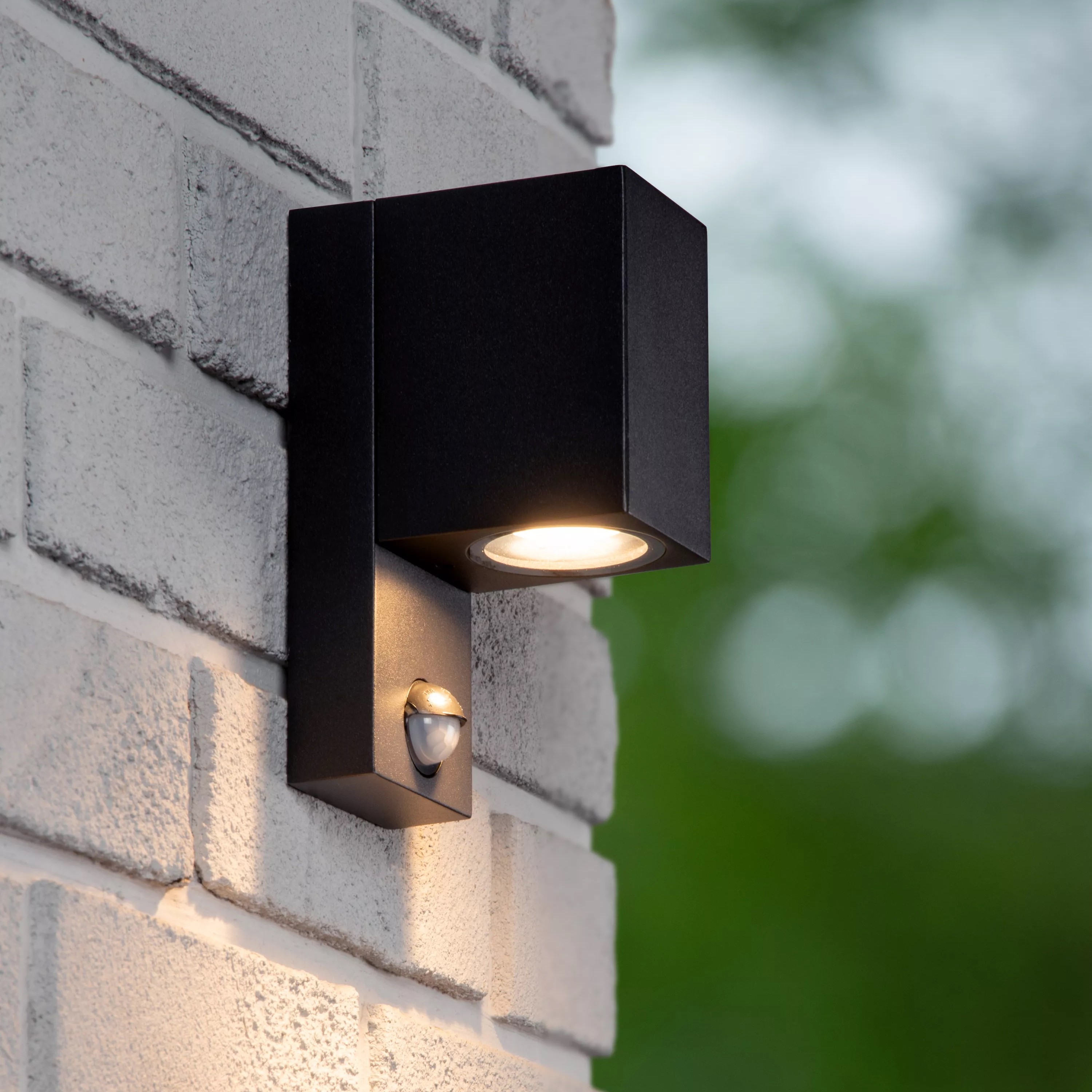 Lucide Zaro - buiten wandlamp met sensor - 7 x 10,4 x 17 cm - IP65 - zwart