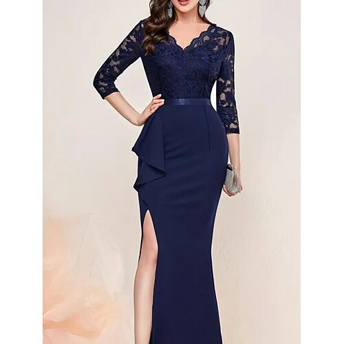 Per donna Nero Blu marino scuro Estate Primavera Autunno Abito maxi Tubino Formale Formale Feste Vestibilità regolare Semplice Scollo a V