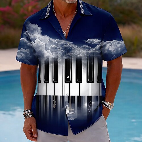 Per uomo Pianoforte Note Musicali Camicia Camicia con Bottoni Camicia con collo camp Manica Corta Vintage Retrò Festival Musicale Casual Quotidiano Estate Primavera Colletto cubano Stampa 3D Nero